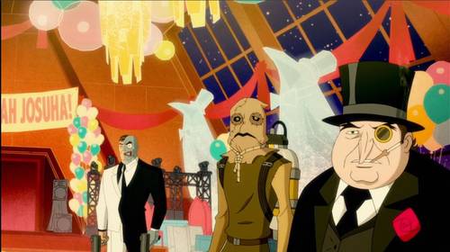 - Яркое визуальное оформление: Анимация создана в стиле поп-арт с яркими и насыщенными красками, что усиливает динамику действия и подчёркивает характеры героев.